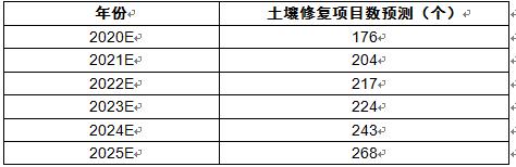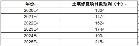 圖表:2020-2025年華南區域土壤修復項目數預測