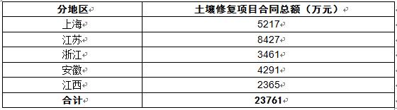 圖表2:華東區域2019年土壤修復項目合同總額情況