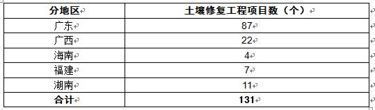 三、華南區域(廣東、廣西、海南、福建、湖南)土壤修復市場 圖表:華南區域2019年土壤修復工程項目數情況