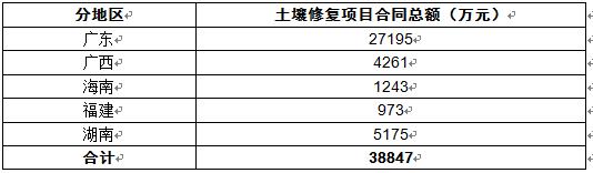 圖表:華南區域2019年土壤修復項目合同總額情況