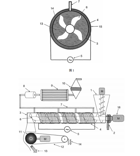 4. 尾氣量少,無二次污染 :本發明所述磁分離強化電磁土壤熱解吸修復裝置,由于電磁熱解吸加熱來自于土壤內部鐵粉和鐵質攪拌軸,內部直接加熱使其排放煙氣量小,氣流速度慢,粉塵夾帶少,且還原性氣氛下二次氧化污染物產生也受到抑制。后續尾氣采用熱交換冷凝的處理方式,能耗低且可以回收不凝氣和一部分有用的液相有機物。傳統的熱解吸設備尾氣處理量大,設備復雜,裝置龐大,能耗高且吸附存在易飽和,再生困難等問題。