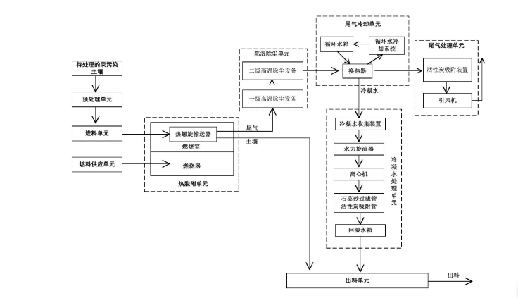 (2)進料單元將處理后的土壤勻速送至熱脫附單元,同時,燃料供應單元將燃料送至熱脫附單元 ;