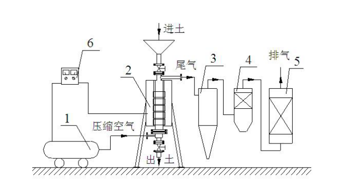 一種土壤通風-立式解吸爐修復有機污染土壤的系統,包括尾氣處理系統和控制系統,除此更主要的是還包括了有空氣壓縮機和立式解吸爐組成的熱解吸系統。所述空氣壓