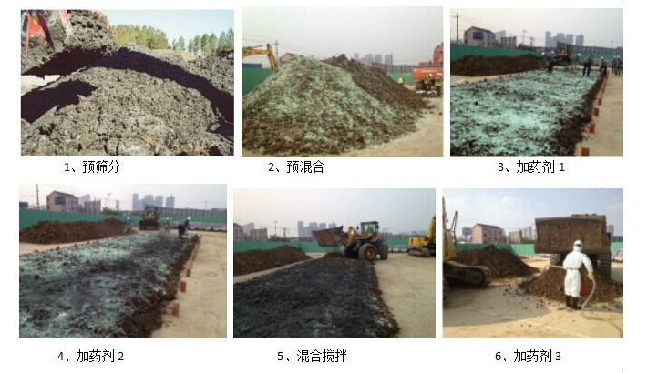 (5)混有建筑垃圾的污染垃圾土;預篩分掉固體垃圾,再進行添加藥劑、固化作業。