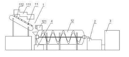 這種土壤淋洗修復裝置,包括淋洗裝置、脫干裝置以及廢水處理裝置,所述淋洗裝置包括第一淋洗機構和臥式攪拌機,所述第一淋洗機構包括傾斜設置的輸送槽,所述輸送槽上方設有第一淋灑口,所述臥式攪拌機設置在所述輸送槽下端出口處,所述臥式攪拌機入口處設有第二淋灑口,所述臥式攪拌機的出料口設有脫干裝置,所述脫干裝置的輸出端連接所述廢水處理裝置。